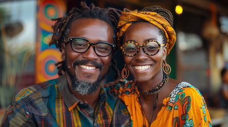 Black history month. colorful portrait of old African couple on vivid background, AI Generated