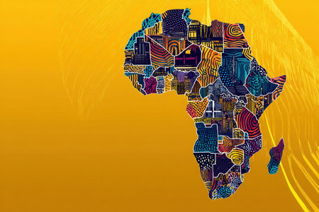 Artistic representation of the African continent vibrant colors and unique designs capturing the essence of creativity and cultural diversity in pop art style
