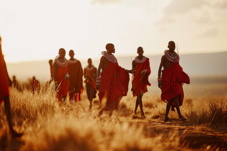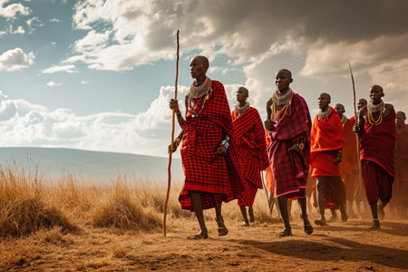 Massai tribe performing a traditional dance in the middle of African savanna AI generated