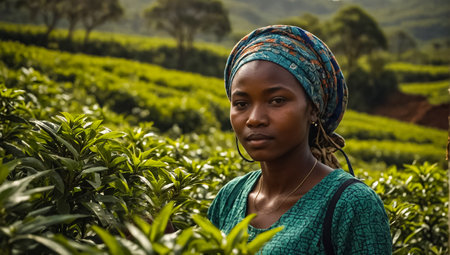 girl picking green tea on a plantation in Kenya