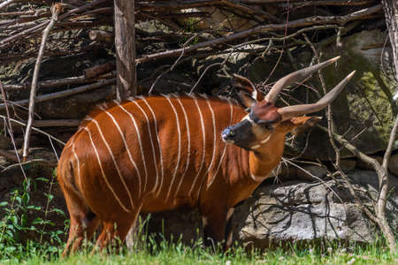 Beautiful animal - big eastern bongo antelope, extremely rare animal leaving only in Kenya.