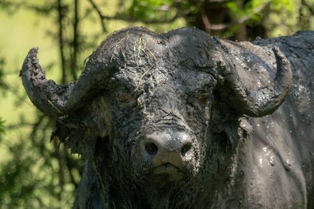 African buffalo, Cape buffalo - Syncerus caffer, bull with the green vegetation in background.