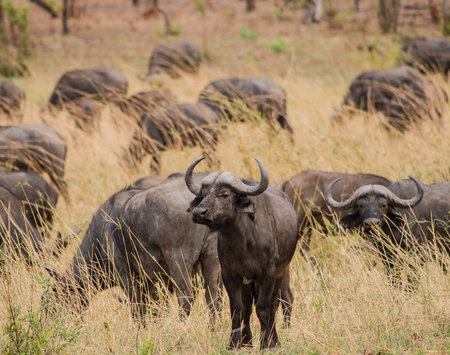 Wild african buffalo (Syncerus caffer) in Serengeti National Park, Tanzania