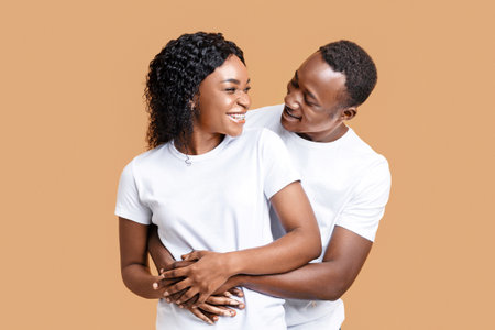 Portrait Of Happy Joyful African American Couple Embracing And Smiling At Camera