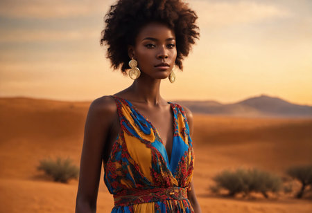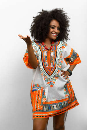 Young beautiful African woman with Afro hair wearing traditional clothes