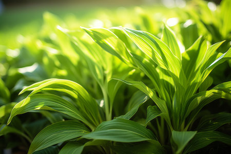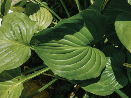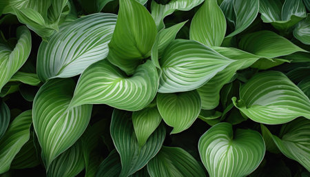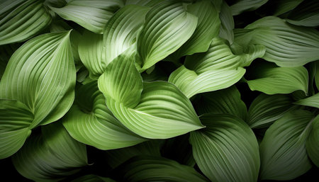Hosta showcases the natural beauty and elegance of green hosta leaves. The plants sway gracefully in the gentle breeze, creating a tranquil atmosphere. Nature feeds the garden