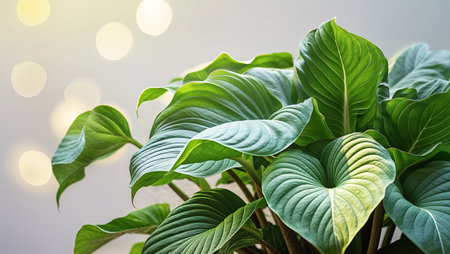 Macro shot beautiful large dark green leaves. Close-up. Natural beautiful background. Banner with green fresh tropical leaves. Decorative floral pattern. Exotic plant leaves.