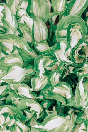 Green variegated Hostas. Hosta plant is popular Perennial flower grows in wet shady places