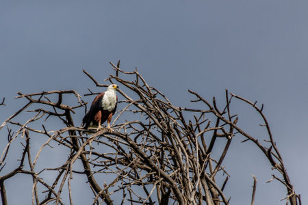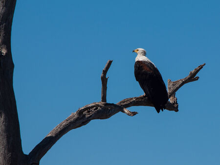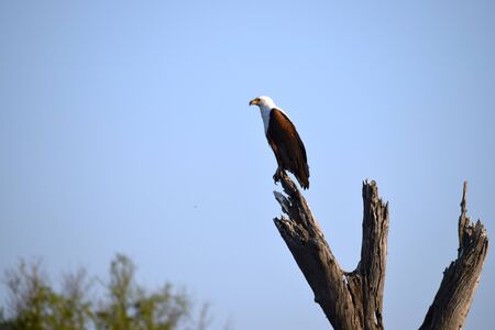 An African fish eagle looking for prey from the top of a tree in Chobe National Park, Botswana