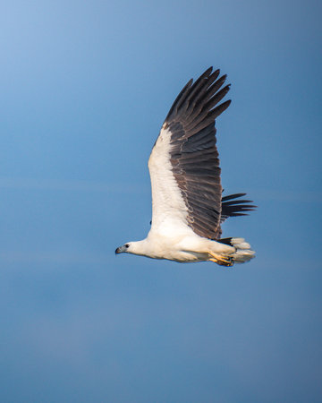 White-Bellied Sea Eagle soaring gracefully in clear skies At Mannar, Sri Lanka