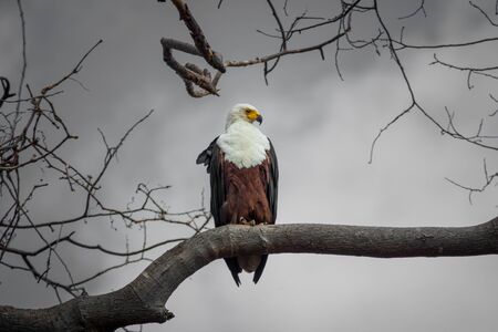 KULGER NATIONAL PARK, SOUTH AFRICA- JULY 2019: African fish eagle on a tree.