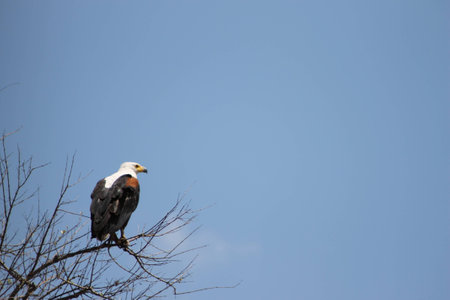 One Fish Eagle Sitting in a Tree against a Blue Sky, Watching Over the Beautiful Chobe National Park, Botswana, Southern Africa