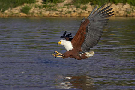 Fish eagle attempting to catch a fish in the Chobe river in Botswana in Southern Africa