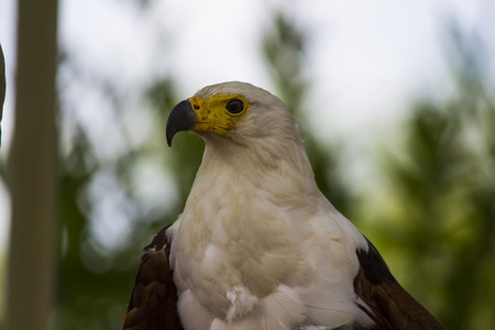 The African Fish Eagle (Haliaeetus vocifer) Portrait of an African Fish Eagle close up at a short distance. Democratic Republic of Congo. Africa.