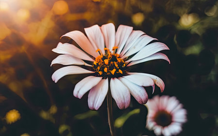 Beautiful daisy flower on a background of the setting sun.