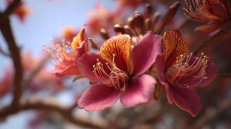 Exotic Flame Tree Blossoms in Vivid Color, Close Up View