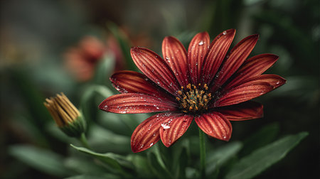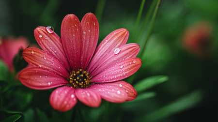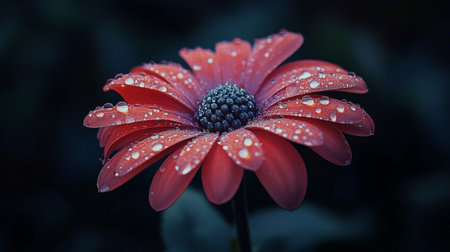 Dew Drops on a Red Daisy Radiating Freshness and Natural Beauty