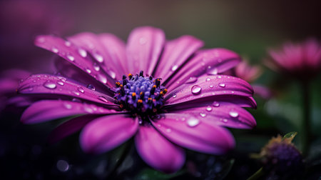Beautiful purple daisy flower with dew drops on petals
