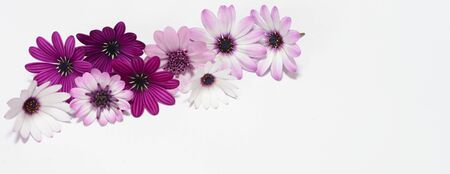 white and purple daisies panorama