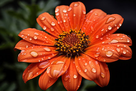 Beautiful orange flower with dew drops on the petals.
