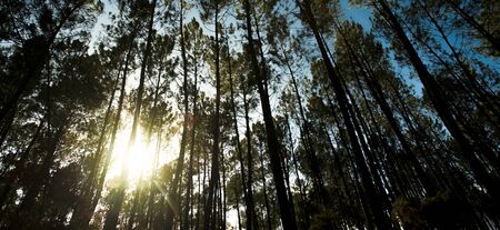 Beautiful sunbeams in beach forest, Landes, France