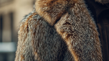Closeup of Faux Fur Coat Detail, Urban Setting