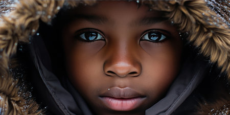 Captivating close-ups of child in winter attire, highlighting unique features and youthful wonder. AI generative.