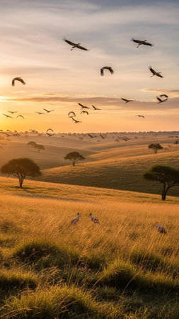 Serengeti Sunrise A Majestic View of African Wildlife in the Savanna Plains