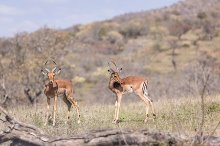 Impala in savanna. National Reserved. South Africa, Kenya. Animal in the habitat. Wildlife scene from nature