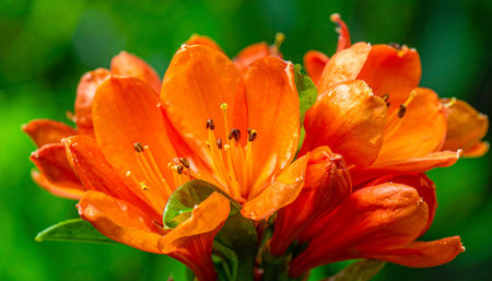 Close-up of Exotic Orange Flowers with Branch and Buds in Natural Setting