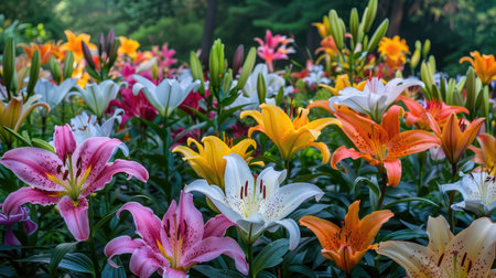 Explore the breathtaking beauty of vibrant lilies in full bloom, showcasing their rich colors and delicate petals in a peaceful garden setting.