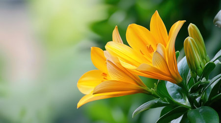 Close-up of bright yellow lilies with green foliage, showcasing the beauty of nature.