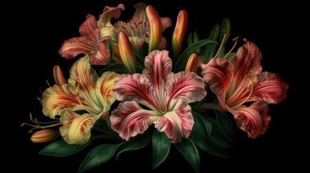 An AI generated illustration of pink Alstroemeria flowers with green leaves