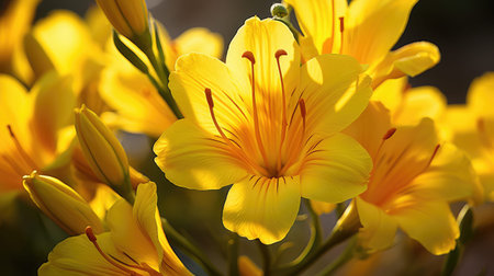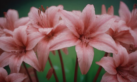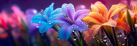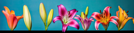An AI generated Beautiful close-up of vibrant lily flowers on a colored background, made with generative AI