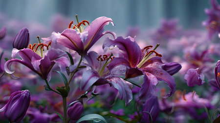 Beautiful purple tiger lily flowers blooming pictures AI Generated art