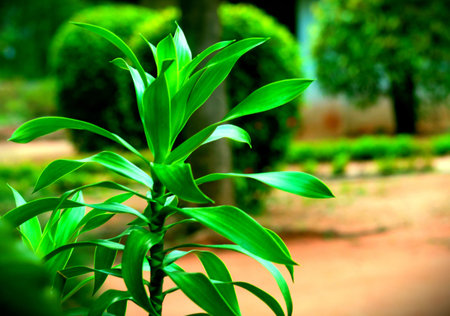 Top down shot of a plant with Long Leaves, Foliage, Selective Focus, Moody theme.