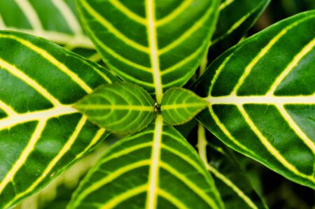 Sanchezia Speciosa Leonard leaf, yellow and green leaf background.