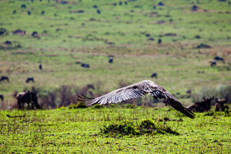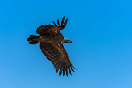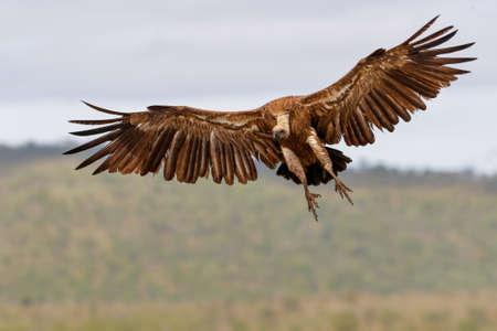 White backed vulture flying before landing in Zimanga Game Reserve in Kwa Zulu Natal in South Africa