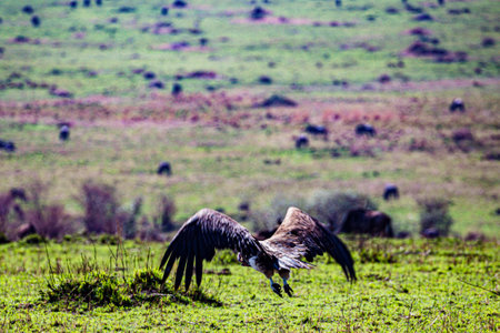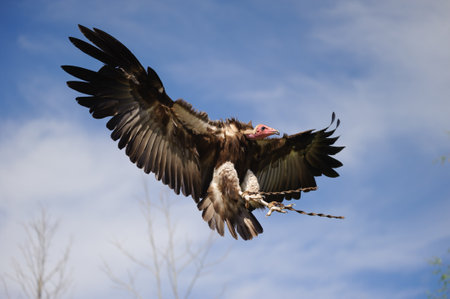 African white-backed vulture spreads wings to land