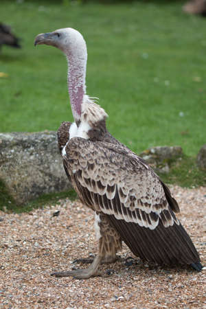 Griffon Vulture, Gyps fulvus, single bird on grass, South Africa