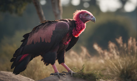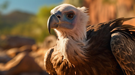 Portrait of the Vulture against the background of the morning sun. side view. Generative AI.