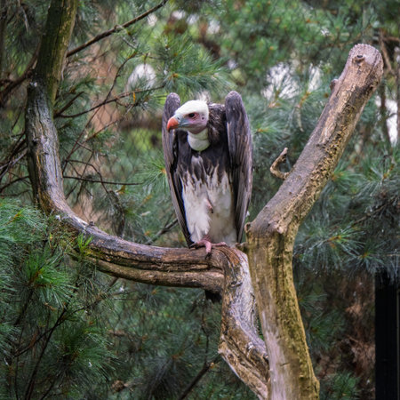 red headed vulture or sarcogyps calvus or pondicherry vulture close up with expression at Ranthambore Tiger Reserve National Park , Rajasthan