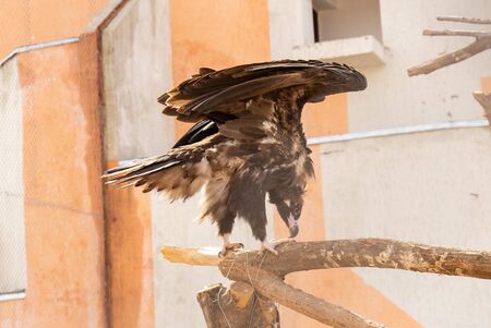 A Bearded Vulture perching on a rocky outcrop