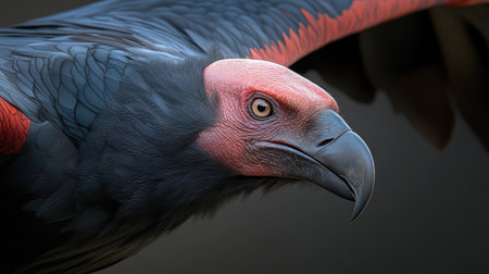 A detailed close-up of an Andean condor massive wings and sharp beak, showing its powerful presence.