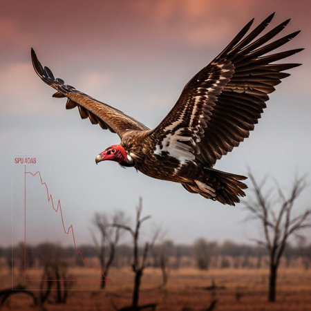 Vulture gliding over arid landscape
