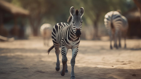 a zebra gracefully standing beside the rich soil, showcasing the artistry of narrative-driven visual storytelling. this captivating image is infused with african influence, highlighted by the wet-on-wet blending technique. the zebra's majestic presence is captured through the soft interplay of light silver and brown tones. shot with a wide-angle lens, this photograph beautifully showcases nature-based patterns while maintaining an iso 200 setting. ai generated
