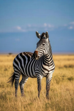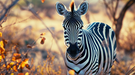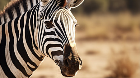 This captivating image features a zebra in its natural habitat, embodying the beauty of wildlife in the breathtaking savannah.