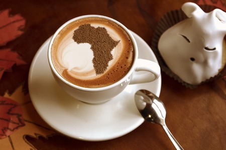 cup of coffee cappuccino with a picture of Africa on milk foam