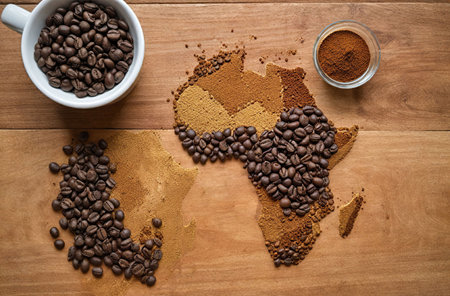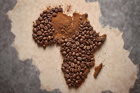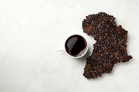 Creative African Continent Map Artwork Made with Coffee Beans and Powder on Marble Background