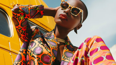 Vibrant Afro american bright shirt. Summer model person. Generate Ai